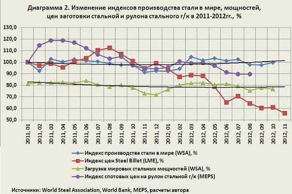 Приведем также некоторые прогнозные оценки, которые позволят оценить будущую ситуацию на рынке стали в 2013 г.