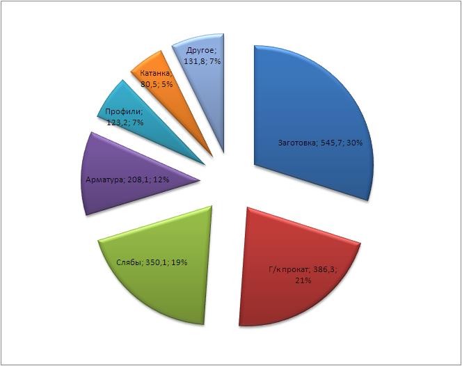 В ноябре 2012 г. экспорт металлопродукции вырос по сравнению с октябрем на 6,5%, до 1,824 млн. т, но по сравнению с ноябрем 2011 г. снизился на 9,1%.