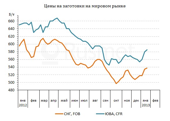 В первой половине января на мировом рынке наблюдалось повышение цен на заготовки