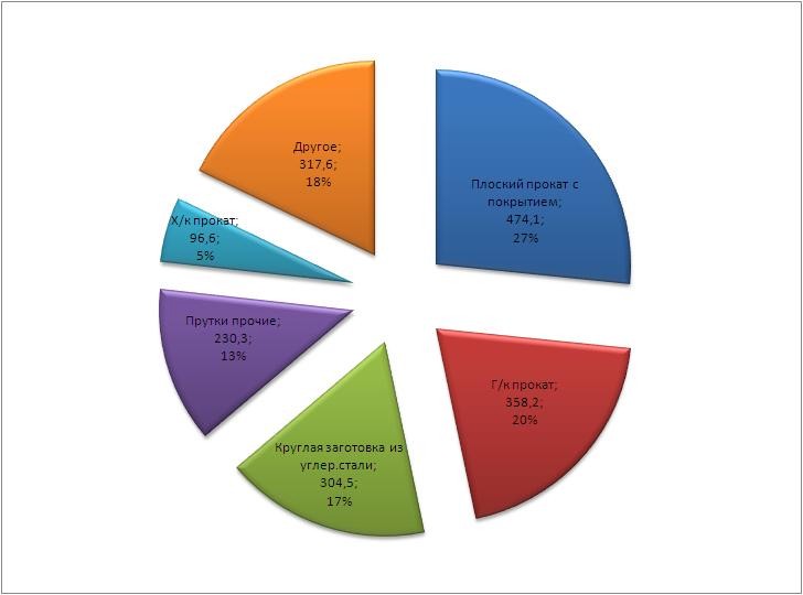 Структура украинского импорта металлопродукции в 2012 г., тыс. т