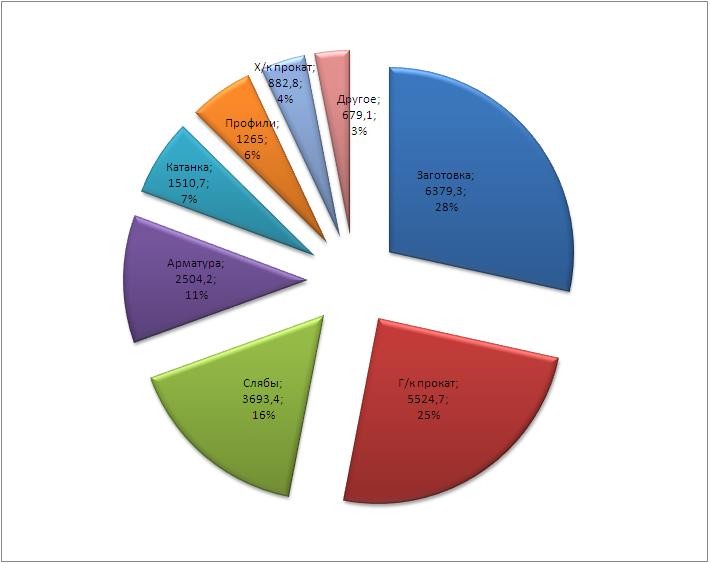 В декабре 2012 г. экспорт металлопродукции снизился по сравнению с ноябрем на 5,2%, до 1,728 млн. т, по сравнению с декабрем 2011 г. - на 23,5%.
