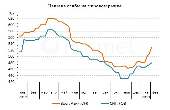 В течение прошлого месяца стоимость горячекатаных рулонов в Корее и на Тайване прибавила более $30 за т, открыв возможность для аналогичного подъема цен на слябы. Кроме того, в последнее время объем предложения на региональном рынке был ограниченным. Российские компании в январе больше ориентировались на турецкий рынок, а Западно-Сибирский меткомбинат сократил производство плоских полуфабрикатов в пользу заготовок. Корейская Posco, остановив часть мощностей для проведения ремонта, вообще перестала продавать слябы, используя их для собственного производства готового проката, а поставки из Японии были незначительными.