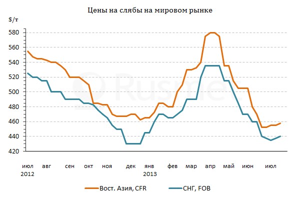 Металлургические компании, в свою очередь, считали подобные уступки совершенно неприемлемыми. В результате бразильские и мексиканские меткомбинаты полностью прекратили поставки в страны Восточной Азии и взяли паузу в расчете на подорожание плоского проката в США. Экспортеры же из стран СНГ в июне сконцентрировались на продажах в Турцию по ценам порядка $435-445 за т FOB. Впрочем, сообщалось и о единичных сделках с дальневосточными покупателями на уровне около $430 за т FOB, т.е. $450-455 за т CFR.