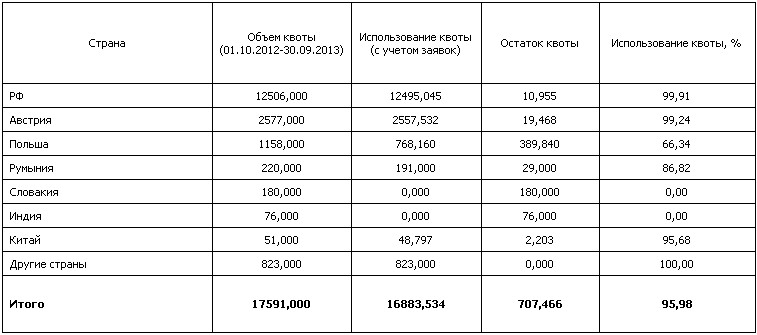 Напомним, что с 1 октября 2012 г. по 31 мая 2013 г. квота была выбрана на 93,14%.
