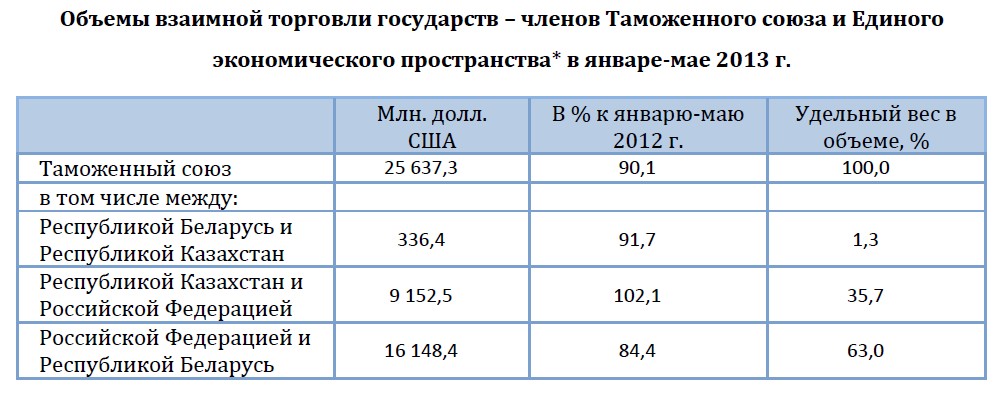 Об итогах внешней и взаимной торговли товарами Таможенного союза и Единого экономического пространства в январе-мае 2013 г.