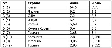 Согласно данным World Steel Association, десятка ведущих стран-производителей стали в июле 2013 г. претерпела изменения.