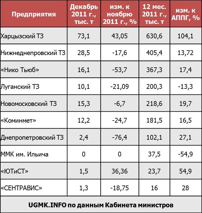 | 01.01.2011 | 01.01.2012 | Изменение цены (%) | Изменение цены (грн./т) | |